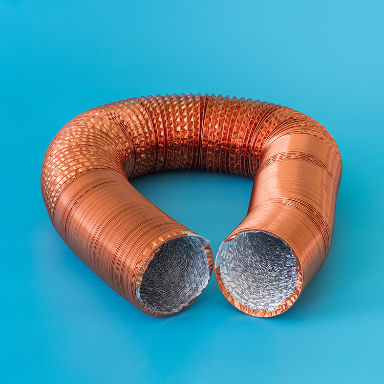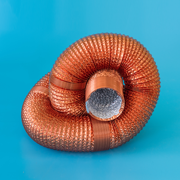 鍍銅鋁箔伸縮軟管采用積層鋁箔復(fù)合膜繞帖高彈性螺旋形強(qiáng)韌鋼絲制作而成。